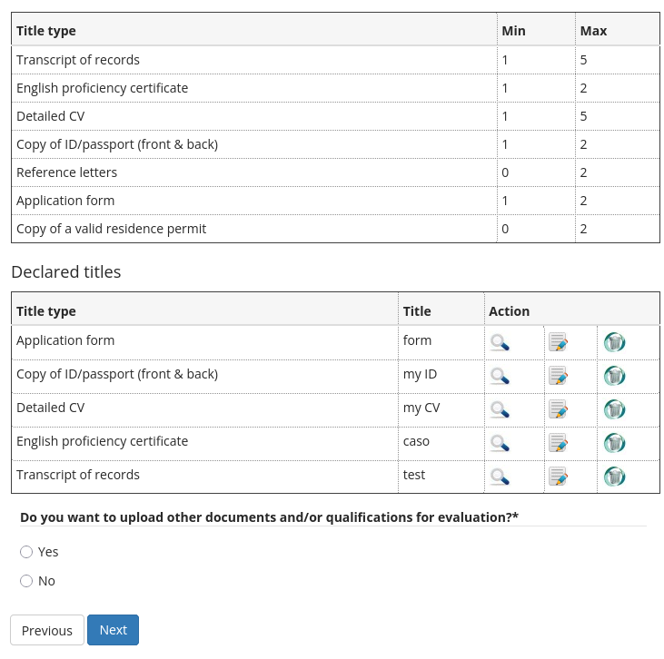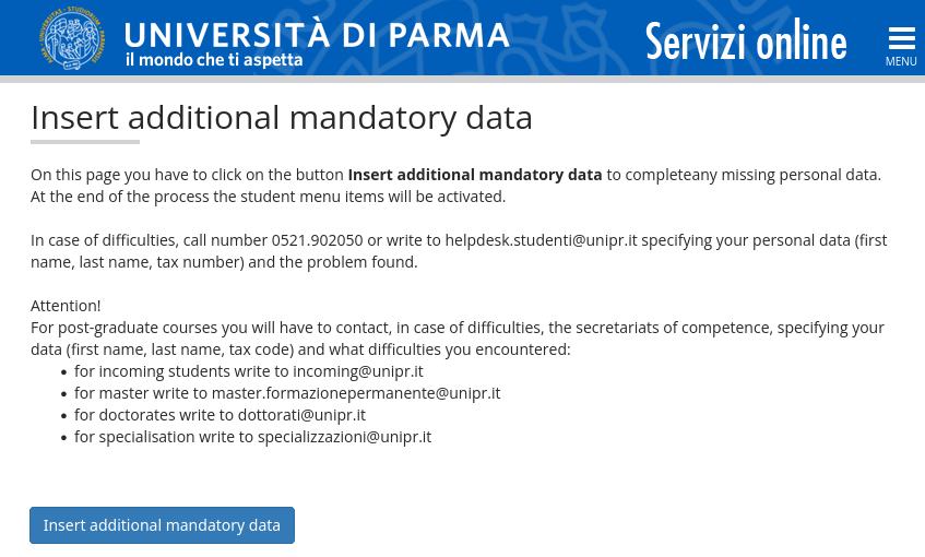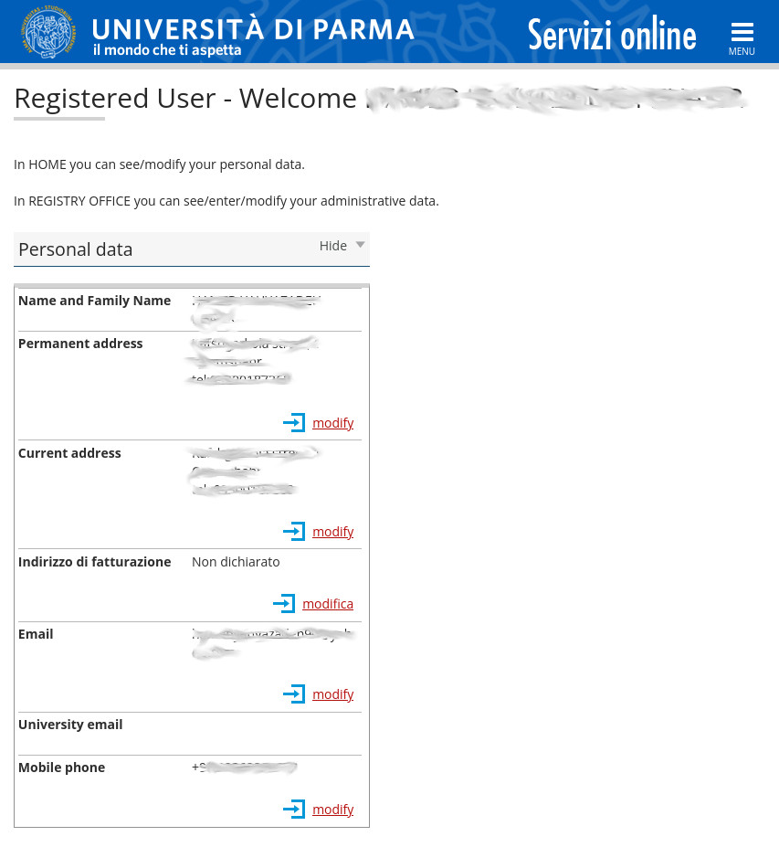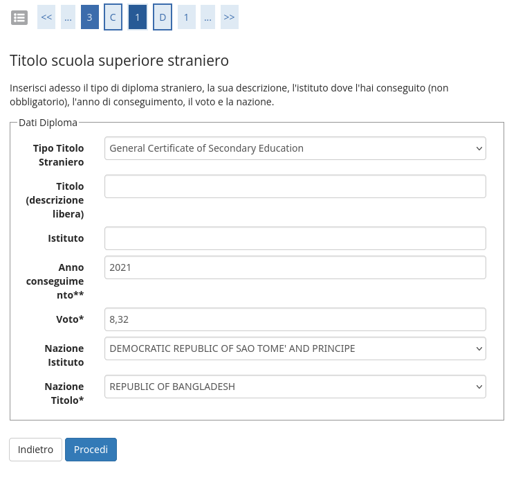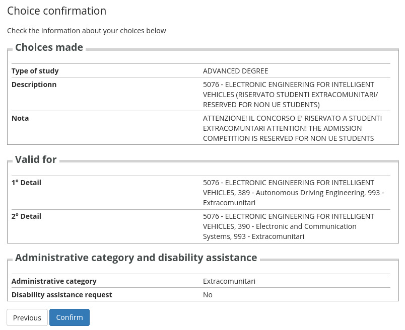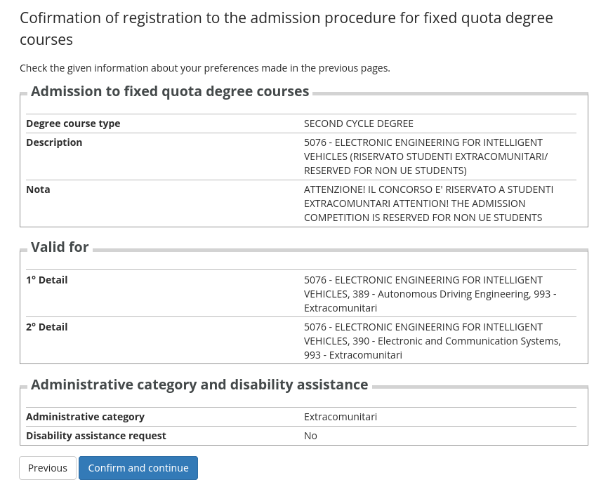 At the end of the process you will be returned to the starting page where you can see a recap of all the data you have enetered. If something is wrong you can modify again the data from s