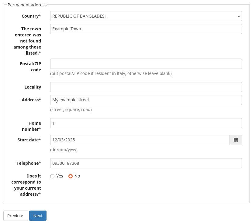 You have to enter missing data about and, specifically, since when you are living there. Please note that field wit