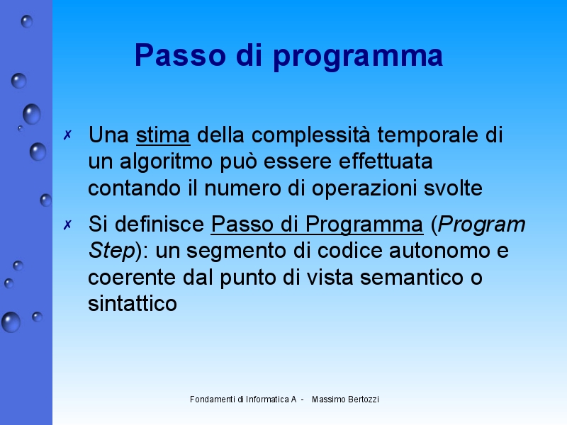 La complessità costante si ha quando gli algoritmi fanno sempre lo stesso numero di operazioni indipendentemente dal numero di dati.
