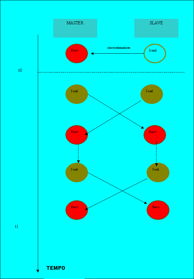 Come si vede c'è molto più parallelismo di esecuzione rispetto alla Roundtrip. Infatti i Risultati mostreranno come la trasmissione con questo test sia molto più veloce in entrambi i sistemi MPICH e MPICH-G2. La cosa interessante è però che, con questo test, MPICH-G2 risulta più veloce anche rispetto a MPICH se la dimensione dei pacchetti abbastanza è grande.Nella sezione Conclusioni cercheremo di dare una spiegazione a questo fenomeno.