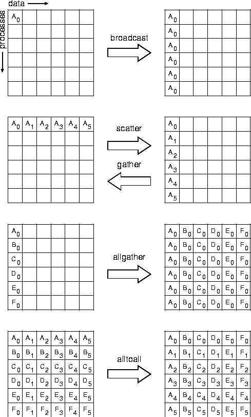 Collective communication is defined as communication that involves a group of processes. The functions of this type provided by MPI are the following: