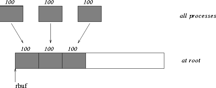Gather 100 ints from every process in group to root. See figure 3 .