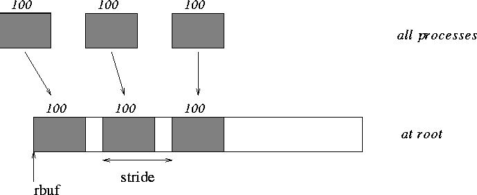 stride ints apart at receiving end. Use MPI_GATHERV