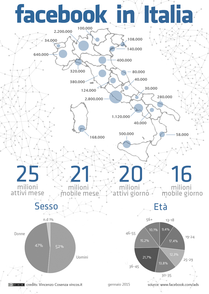 - Numero totale di utenti attivi su Facebook (è utente attivo chi si collega almeno una volta al mese): 1.15 miliardi